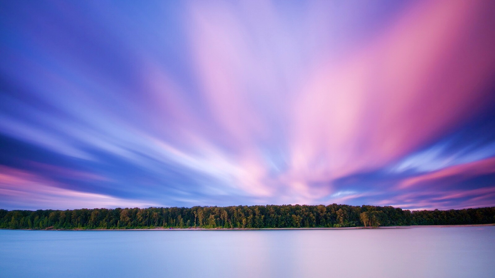 Обои для рабочего стола «Вечернее небо над озером» 1600х900 с фильтром vibrance (оригинал 1680х1050)