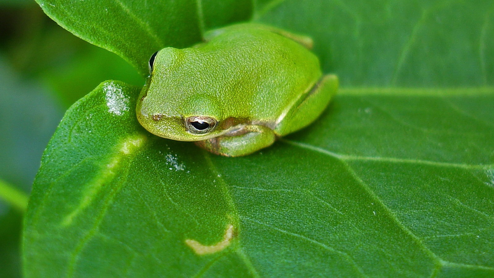 Обои для рабочего стола «Лягушка на листике» 1600х900 (оригинал 1600х1200)