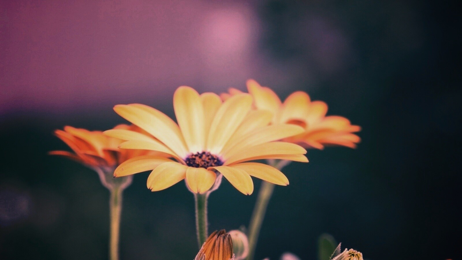 Обои для рабочего стола «Три желтых цветка» 1600х900 с фильтром earlybird (оригинал 1920х1200)