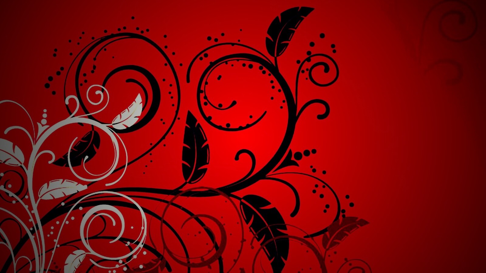 «Черно-белые листики на красном фоне»