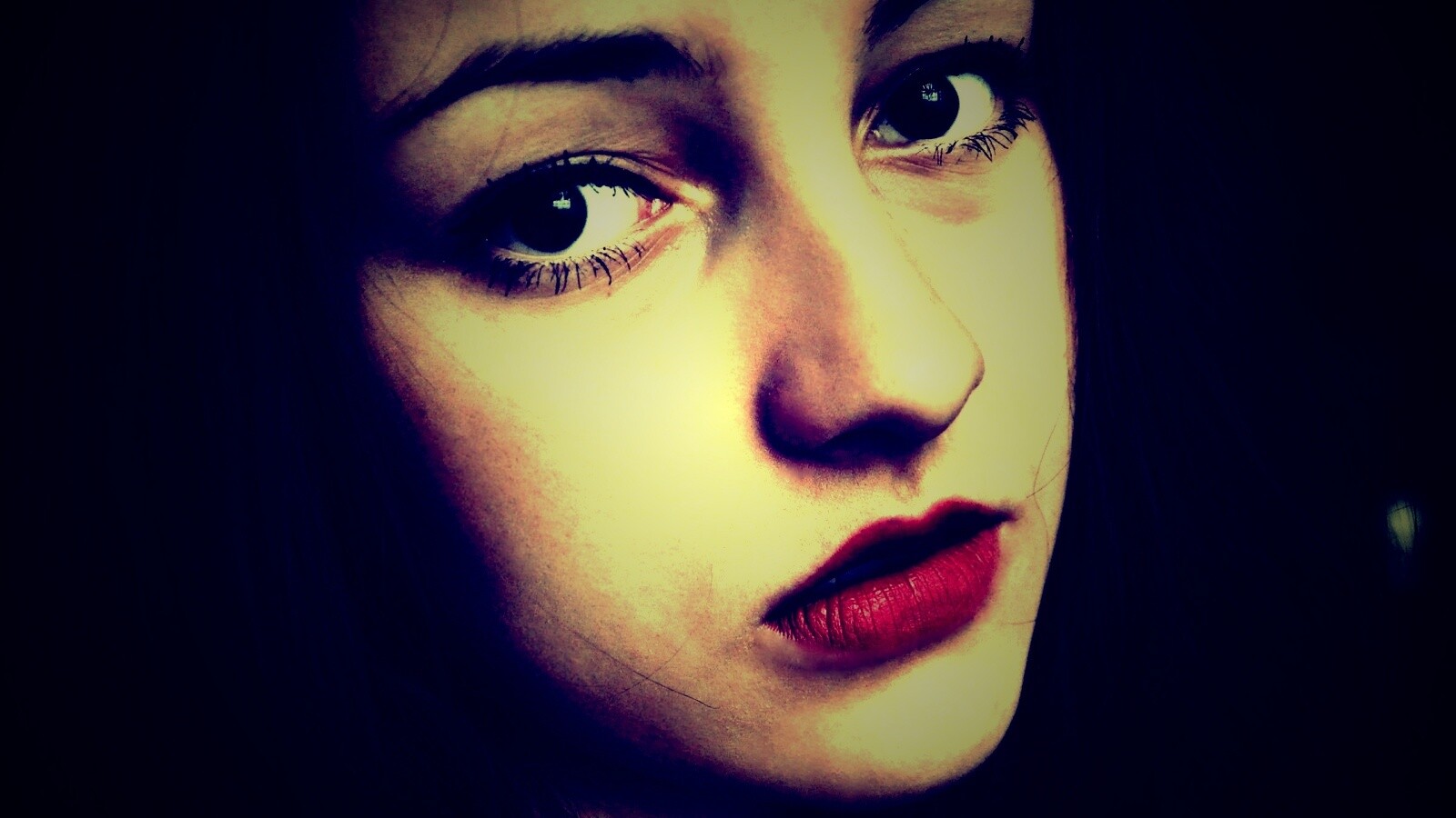 «Брюнетка с ярким макияжем и печальным лицом»