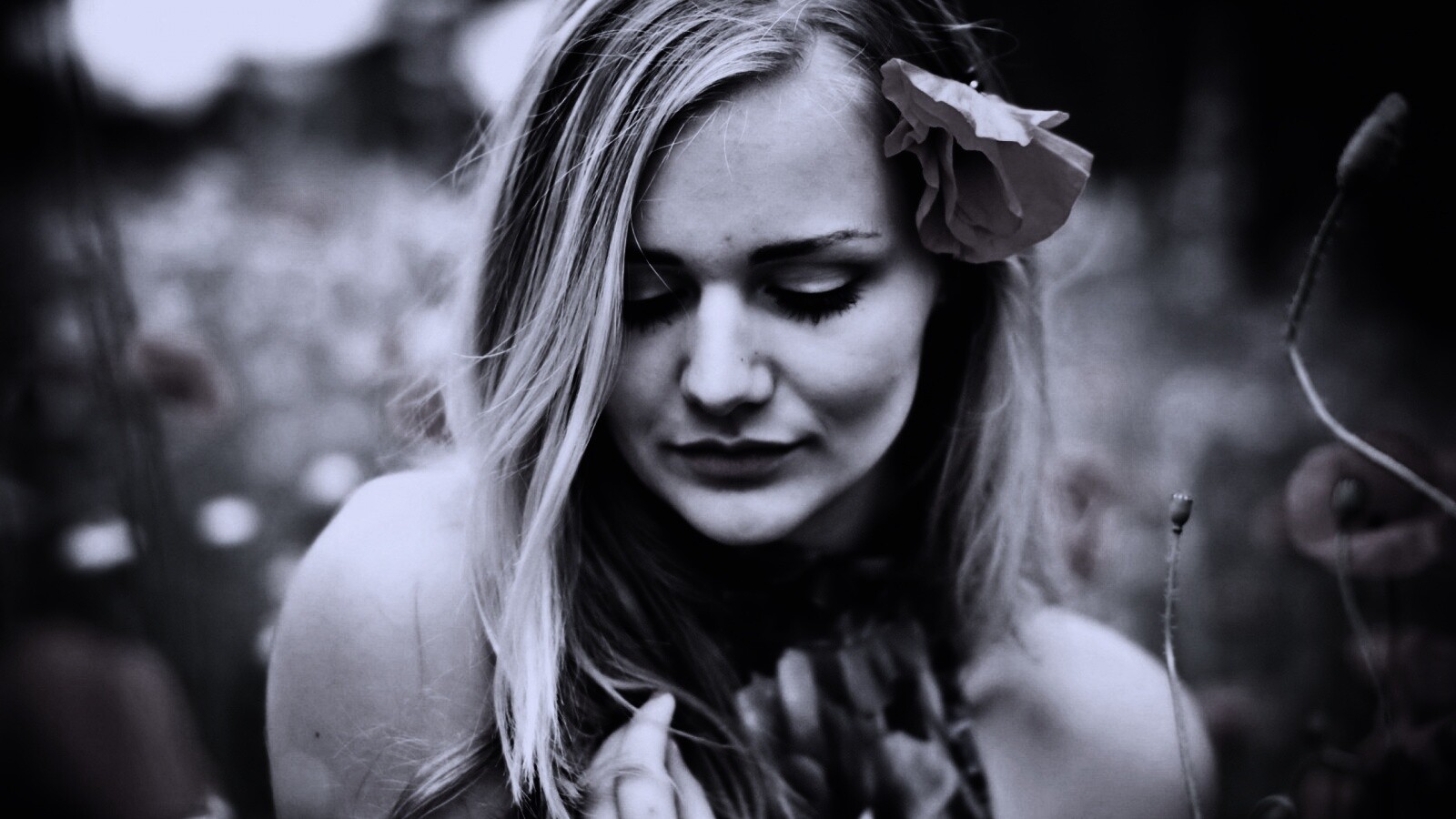 Обои для рабочего стола «Блондинка в маках» 1600х900 с фильтром gotham (оригинал 2560х1600)