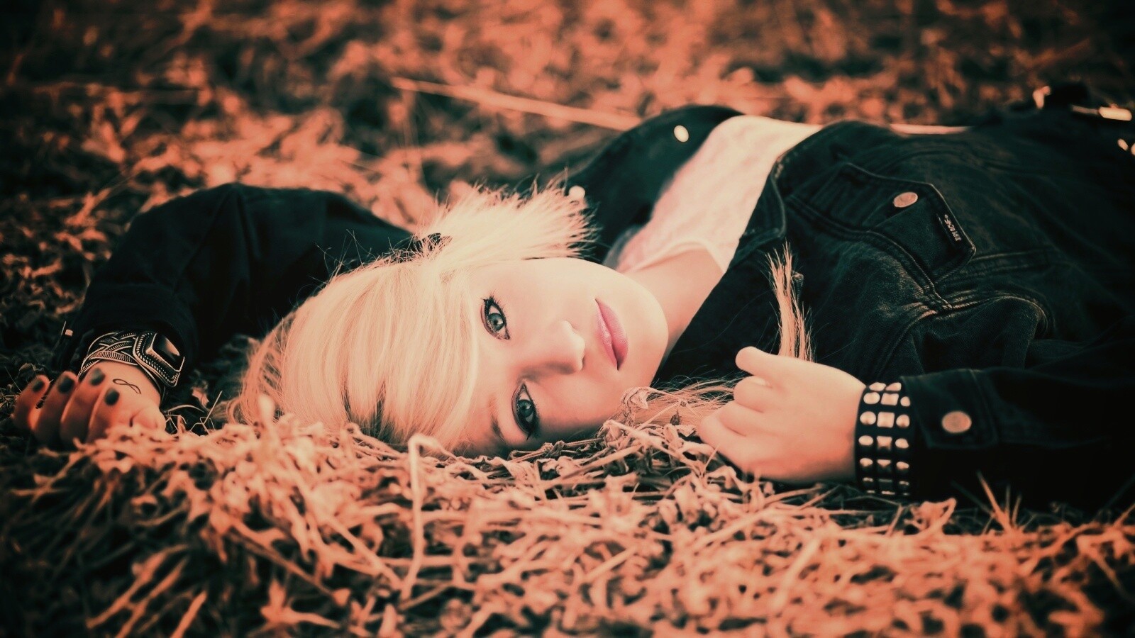 «Блондинка лежащая на траве»