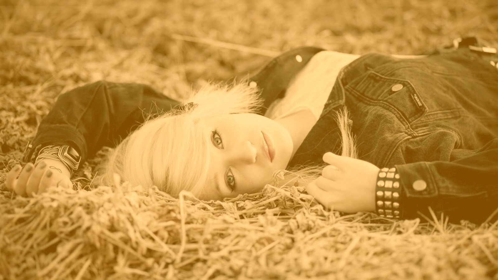 «Блондинка лежащая на траве»