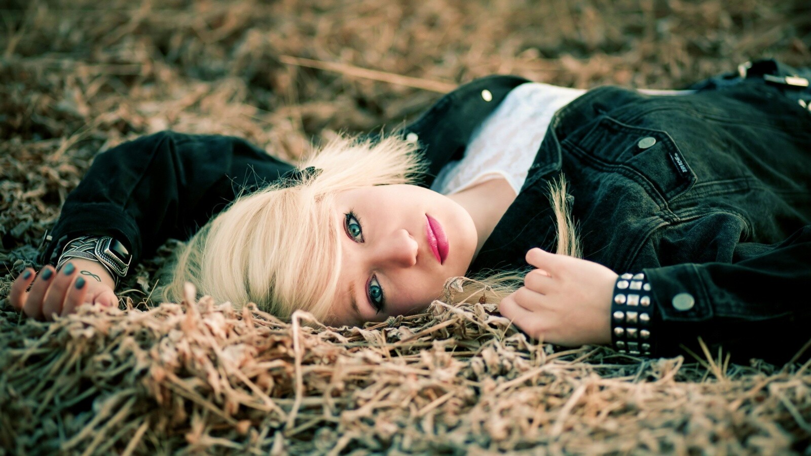 «Блондинка лежащая на траве»