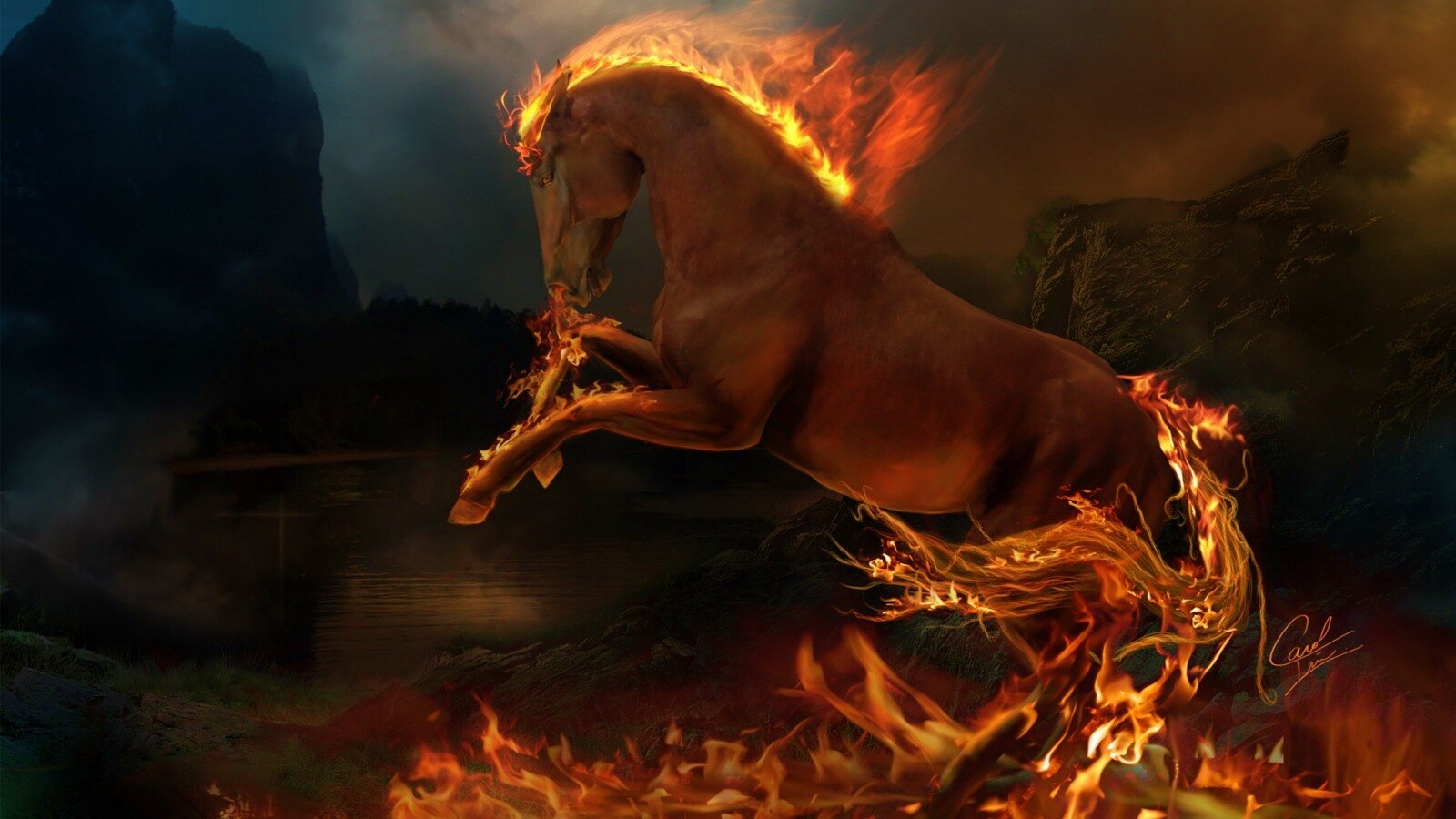 Обои для рабочего стола «Огненный скакун» 1600х900 с фильтром vibrance (оригинал 1920х1200)