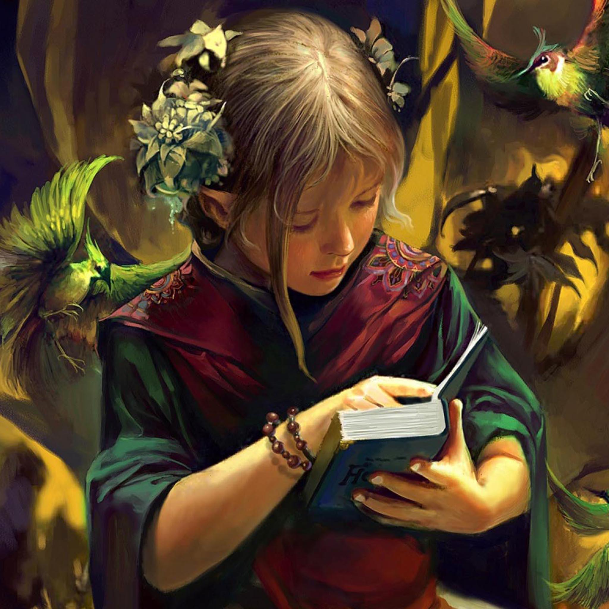 Обои для рабочего стола «Читающая девочка» 2048х2048