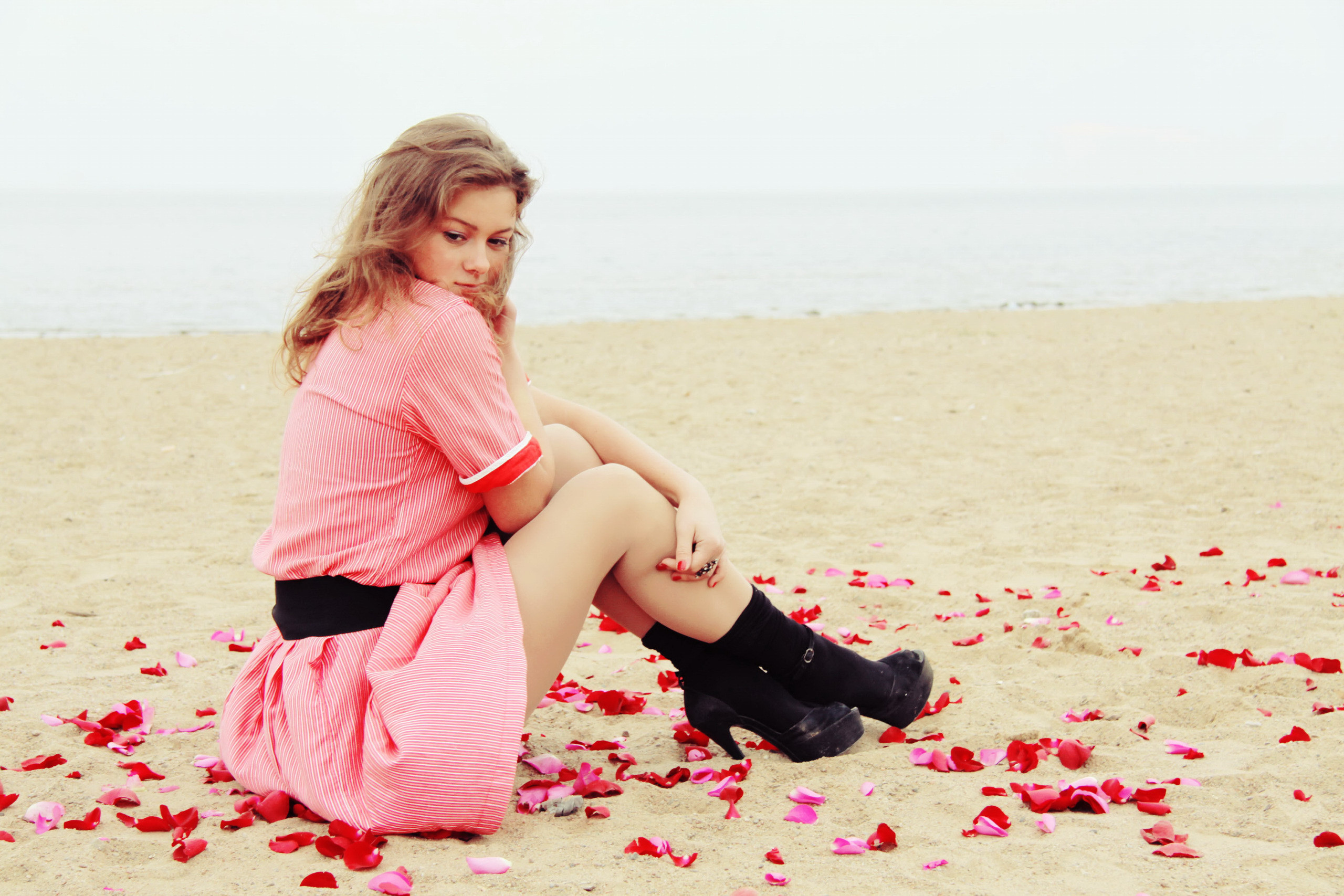 «Девушка среди лепестков на пляже»